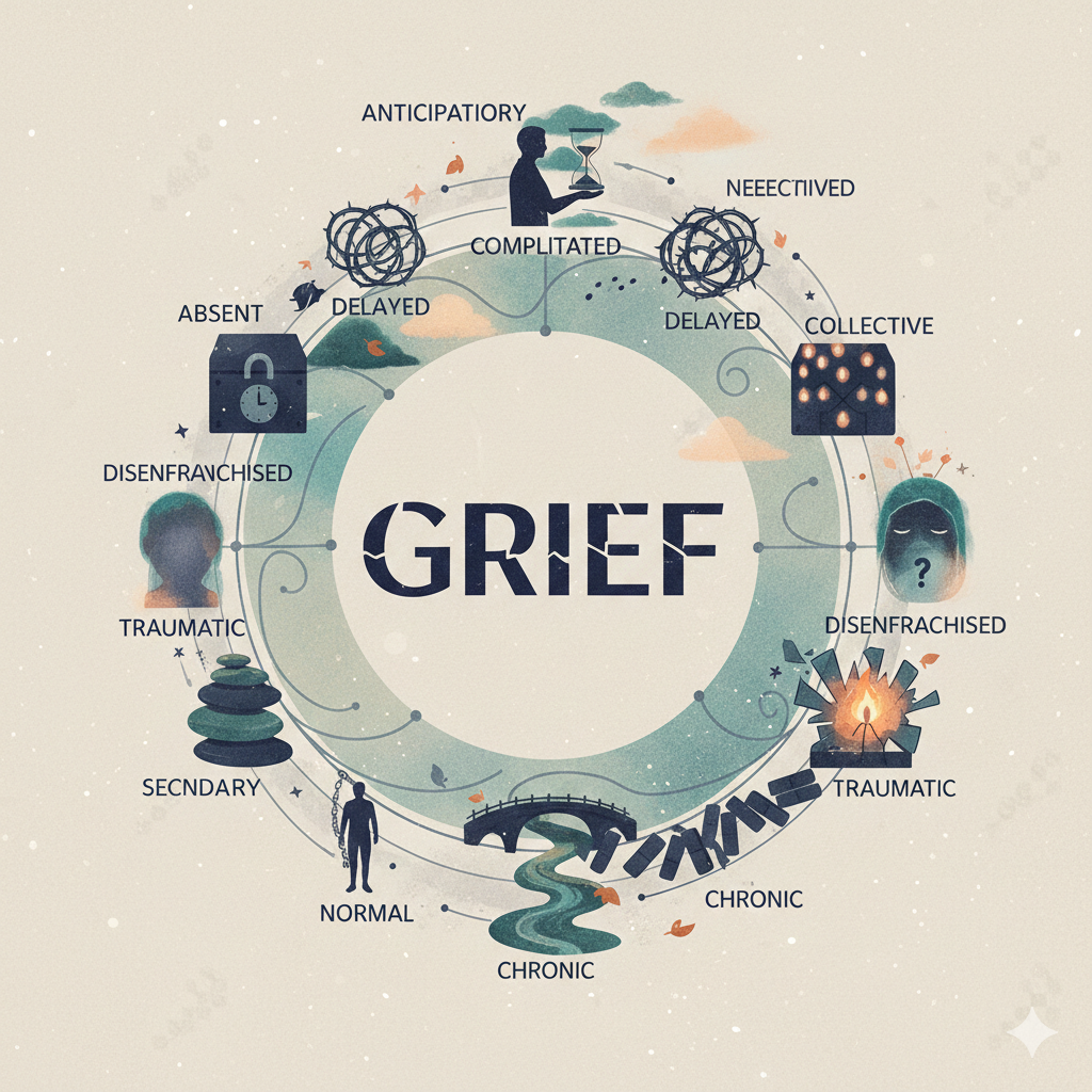 Grief is not one-size-fits-all. Researchers identify several forms of grief, each with its own characteristics.